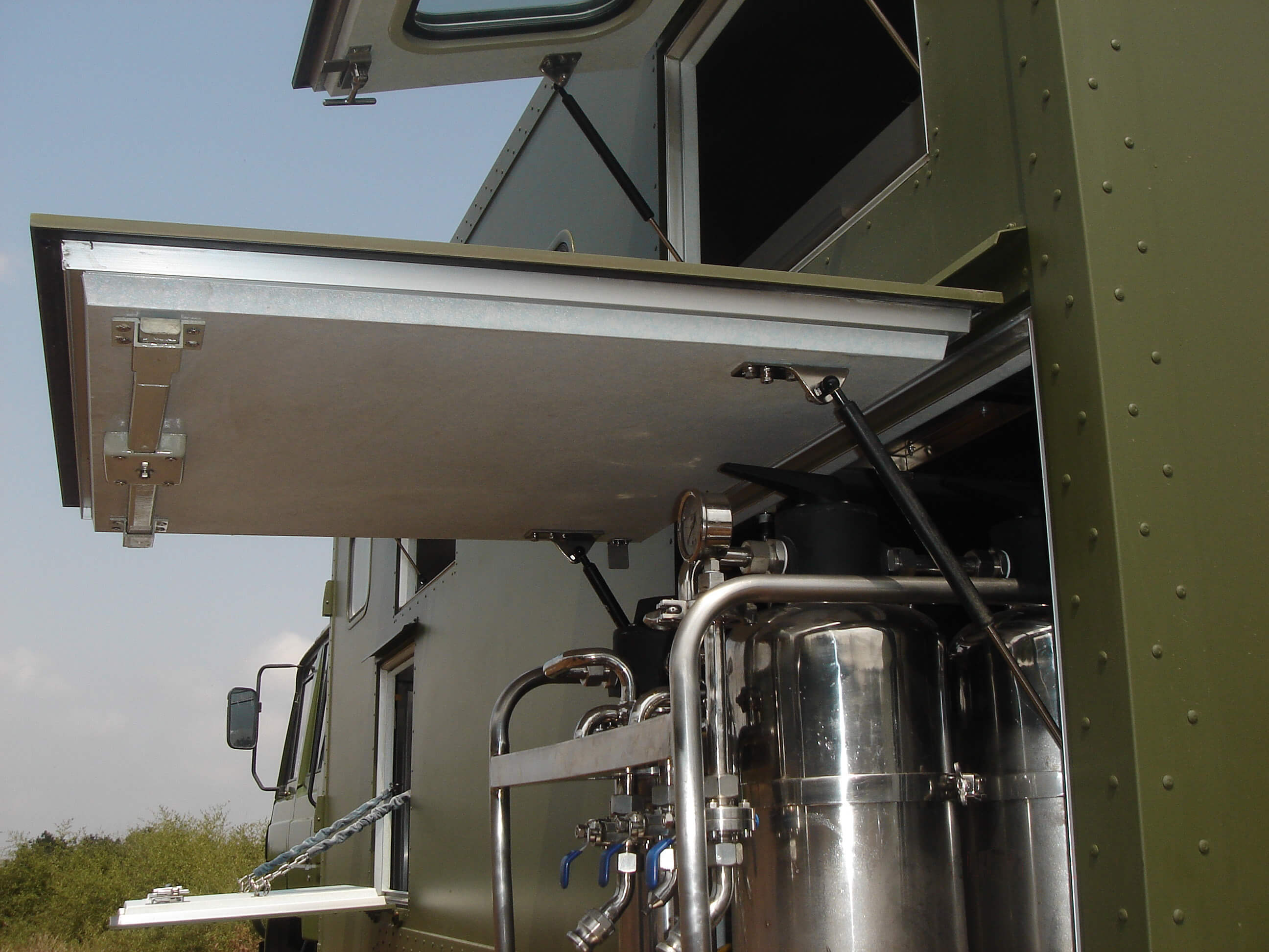 車載移動(dòng)凈水裝置是一種移動(dòng)方便,靈活,獨(dú)立的凈水系統(tǒng)。能夠?qū)⒑?、湖、塘等地面水、地下水和海水、苦咸水進(jìn)行處理,達(dá)到生活用水標(biāo)準(zhǔn)。廣泛應(yīng)用于地震、洪水等自然災(zāi)害及戰(zhàn)時(shí)臨時(shí)供水。
